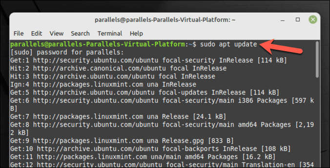 - Update your package list with the newly added repositories by typing sudo apt update and pressing Enter.