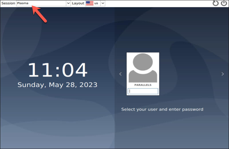- Follow any additional on-screen instructions to complete the process. Once the installation is complete, restart your computer. * After the restart is complete, you should be able to select the KDE Plasma desktop environment at the login screen. The appearance of this menu will vary, depending on the display manager you selected to use, but make sure to choose Plasma before signing in.