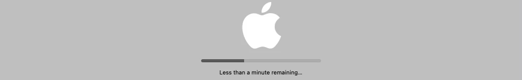 - It will go to a black screen with white text, then to a gray screen with the Apple logo that says, “Less than a minute remaining…” There is a lot more than a minute remaining.