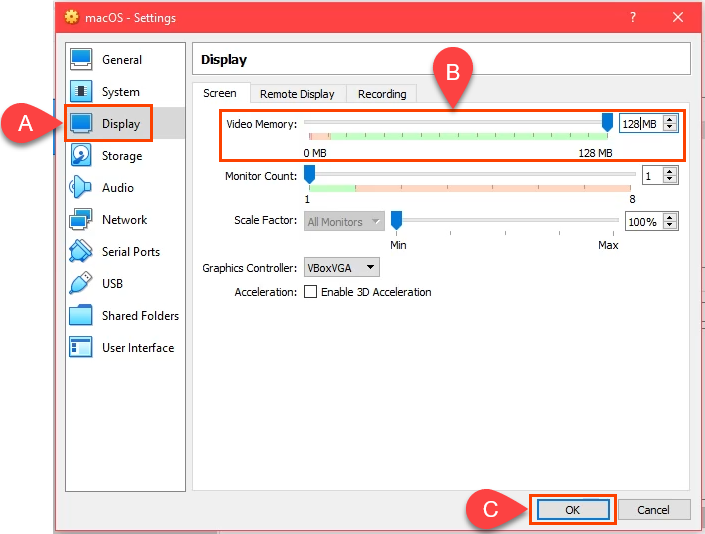 - Allocate as much memory as possible for the macOS VM without exceeding 50% of total memory. Your PC still needs resources too.