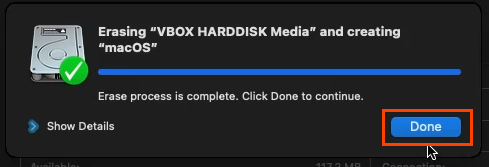 - Once the volume is erased and renamed, select **Done **to continue.