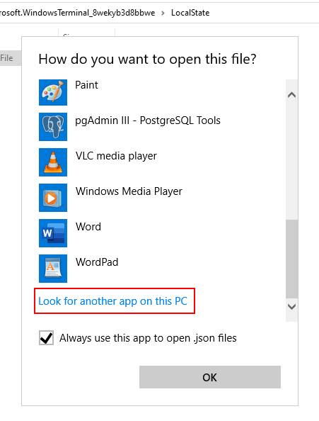 - In the app selection menu, click More apps, then click Look for another app on this PC.