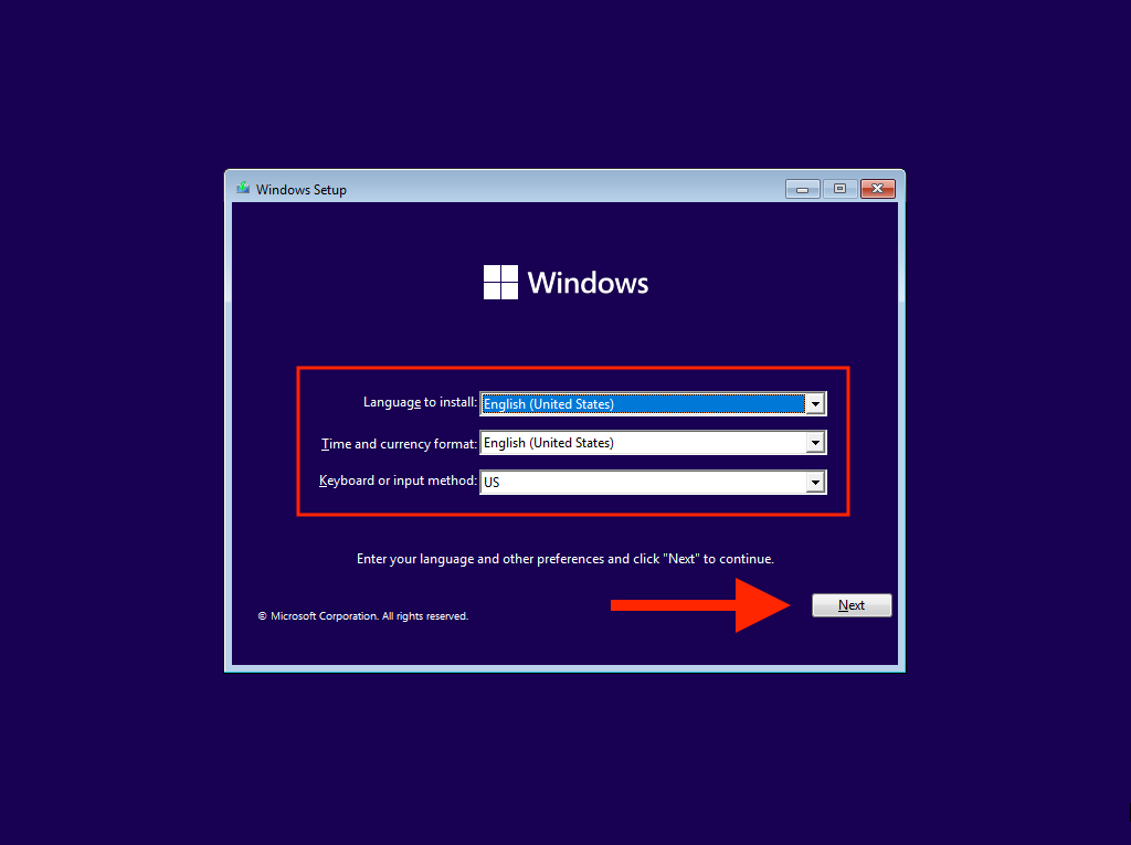 After booting from the USB drive, you should see the Windows 11 Setup screen. Go through the steps that follow to install Windows 11.