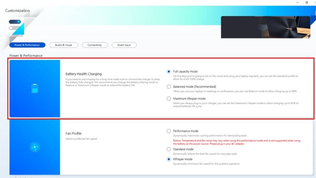 Asus has an official charging threshold feature it calls Asus Battery Health Charging. This is an application preinstalled on Asus laptops as part of MyASUS, but it’s easy to miss. You’ll initially get a “Battery power setting is in Full Capacity Mode now” message, but you’ll only get another notification 90 days later if you dismiss that message.