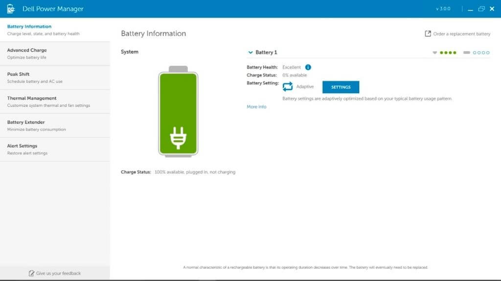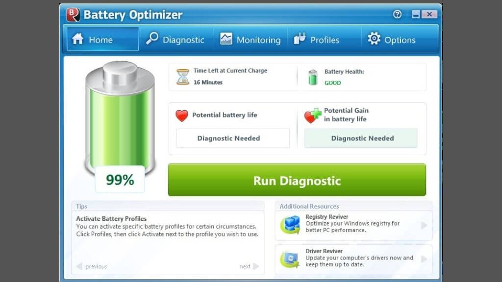 Battery Optimizer uses proprietary analysis methods to check the existing health of your laptop battery and suggests things you can do to preserve that health.