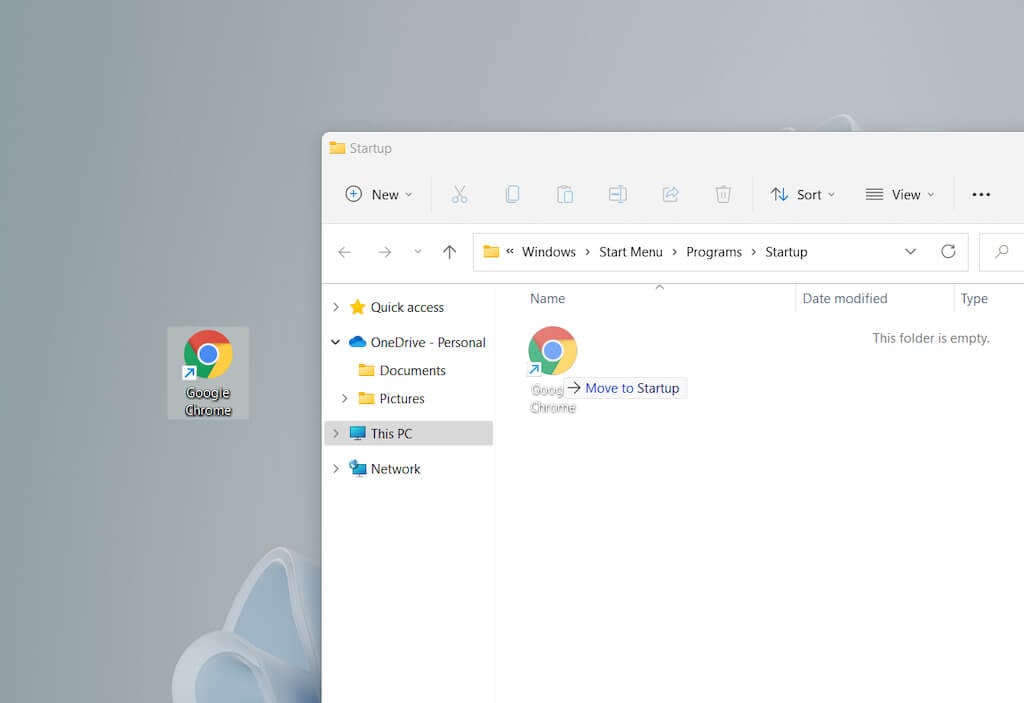 - Open the Startup folder and drag the File Explorer window to a corner of your desktop.