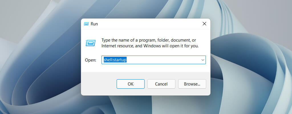 - Type the following into the Run** **dialog box and select OK: * Open the Startup folder for your user account—shell:startup