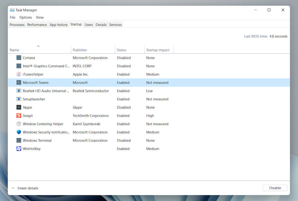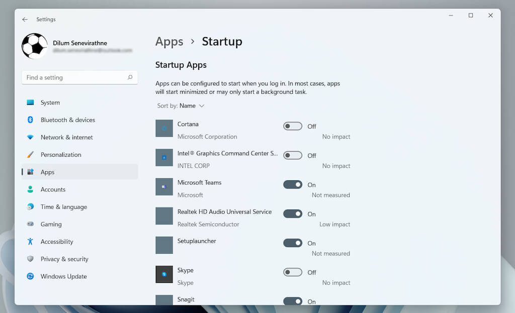 - Turn off or enable the switch next to any program you want to disable or enable at startup.