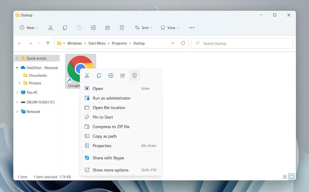 Just delete the shortcut if you want to stop a program from starting alongside Windows 11 at startup.