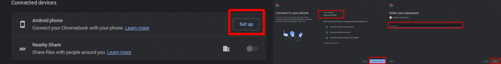 - From the menu on the left, select the phone you want to connect. Your Chromebook may automatically detect your device, so check that it has selected the right device.