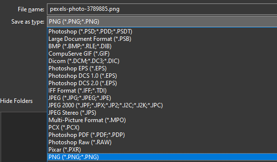 Only certain file types support transparent backgrounds, so you’ll need to choose the right file when exporting your image in Photoshop. We would recommend using PNG – it’s a popular web format that can support transparent backgrounds, and it can easily be compressed to save storage or online bandwidth.