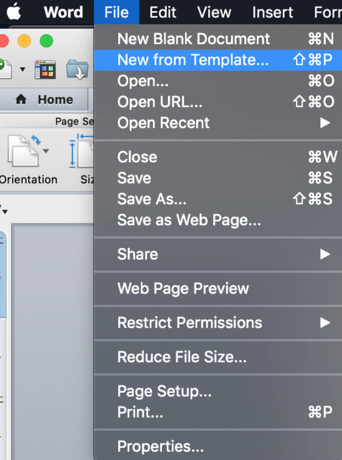 - From Word’s menu, select File > New from Template.