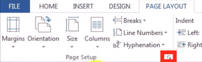 - Select the little arrow icon at the bottom-right corner of the tab to open the Page Setup window.