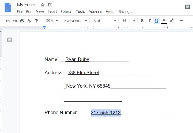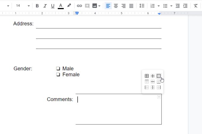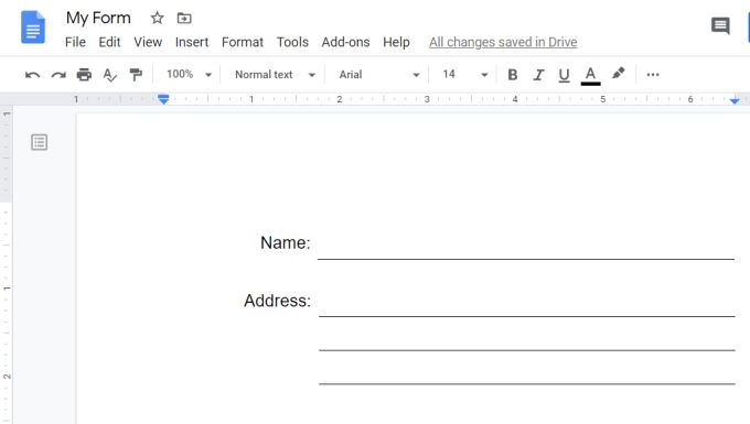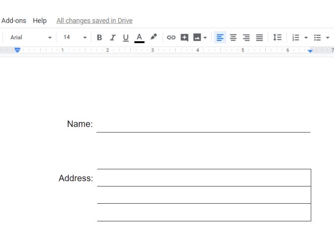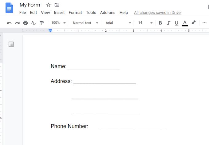 Thankfully, there are some tricks you can do with tables in a Google Docs document that creates a perfect form that people can fill out while keeping the lines in the form in place.