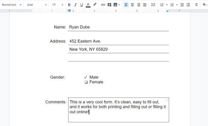 Now you have most of the components you need for almost any fillable form you may need to create in Google Docs.