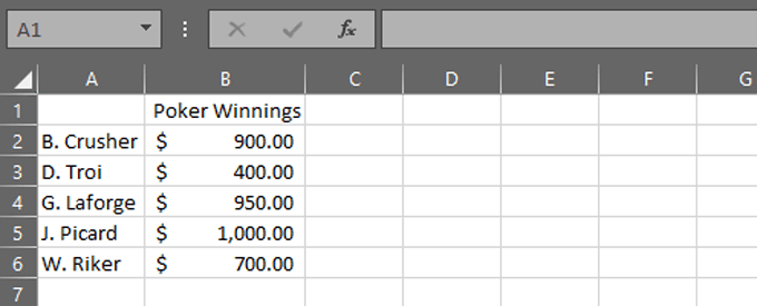 - * Start with your data. In this example, we see the total amount of money that each player has won during an evening of poker.