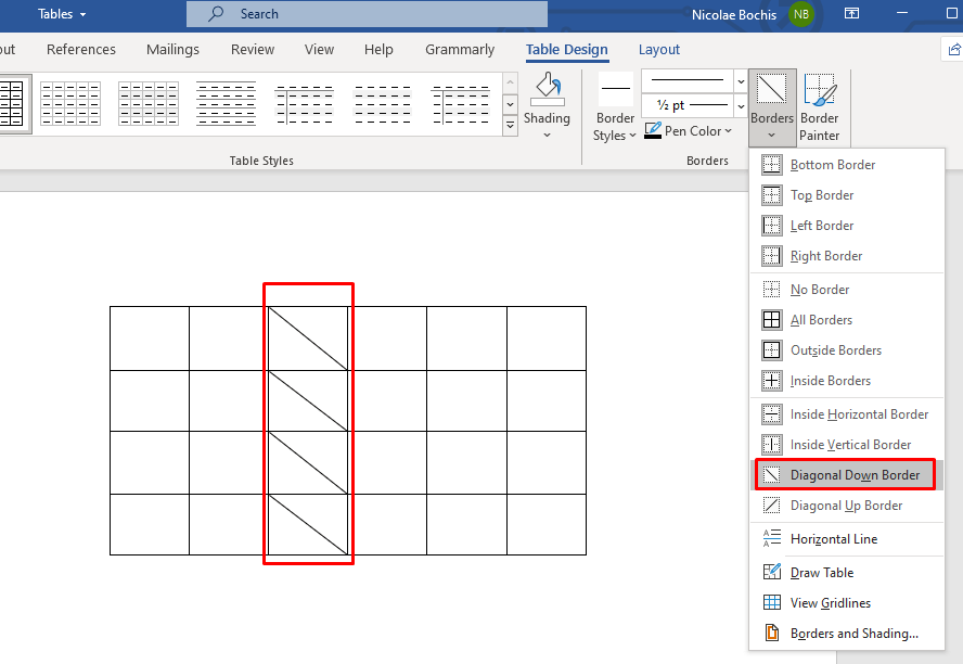 - Once you decide on the border style, click it to apply it to your table.