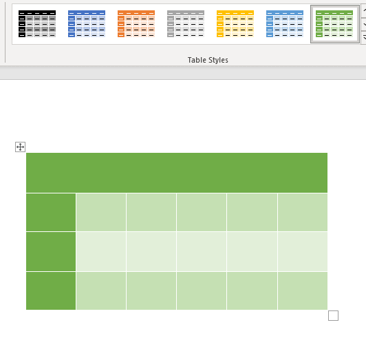 - If you place your cursor over a specific style, you’ll see its preview on your table.