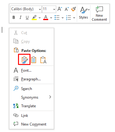- You can also right-click your mouse and select Keep Source Formatting under Paste Options.