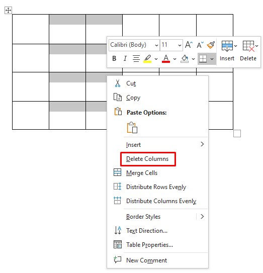 To delete rows or columns, select them, right-click, and select Delete Columns (or rows).