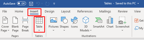 - Go to Insert, then press on Table.