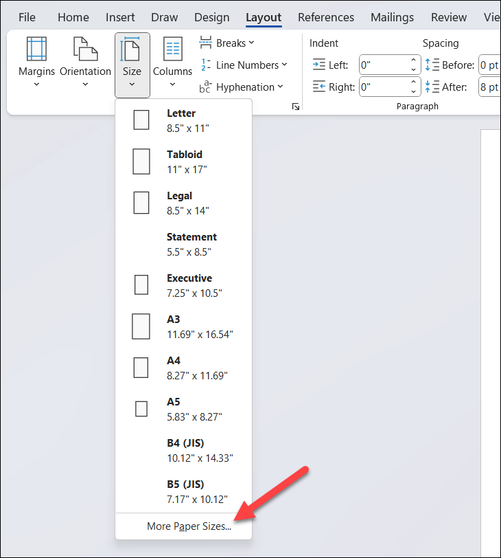 - In Layout > Size, choose the 4″x 6″ paper size—this is an ideal size for printing flashcards. If this paper size isn’t visible, press More Paper Sizes at the bottom.