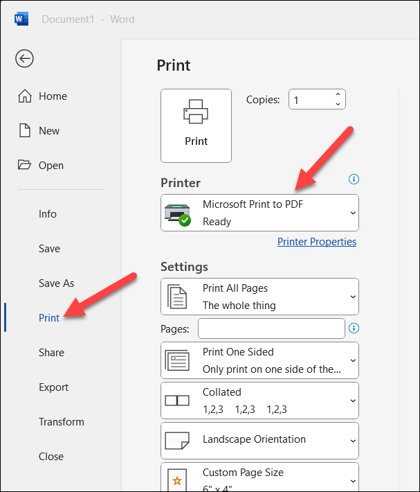- Next, press File > Print to open your printer settings menu.