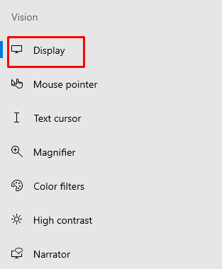 - From the left side menu select Display, under the Vision section.