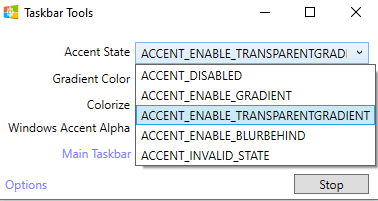 - When the app opens, select ACCENT_ENABLE_TRANSPARENTGRADIENT from the Accent State drop-down menu.