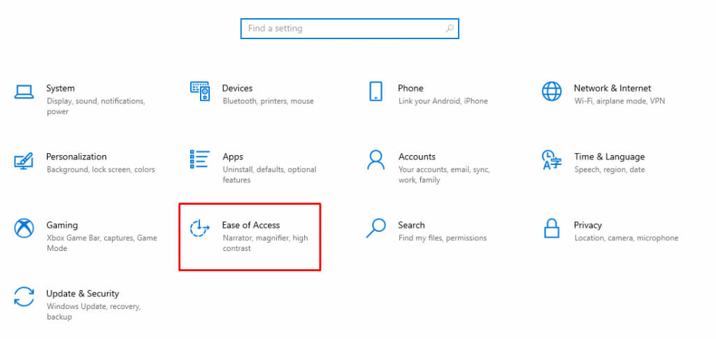 - Go to the Settings app, and select the Ease of Access option.