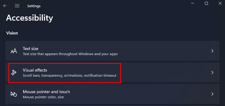 - Select the Visual Effects section.