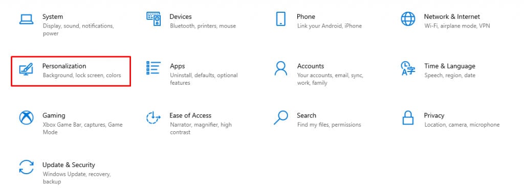 - Go to Settings, and select Personalize.