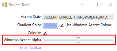 - Use the Windows Accent Alpha slider to change the opacity of your Taskbar.