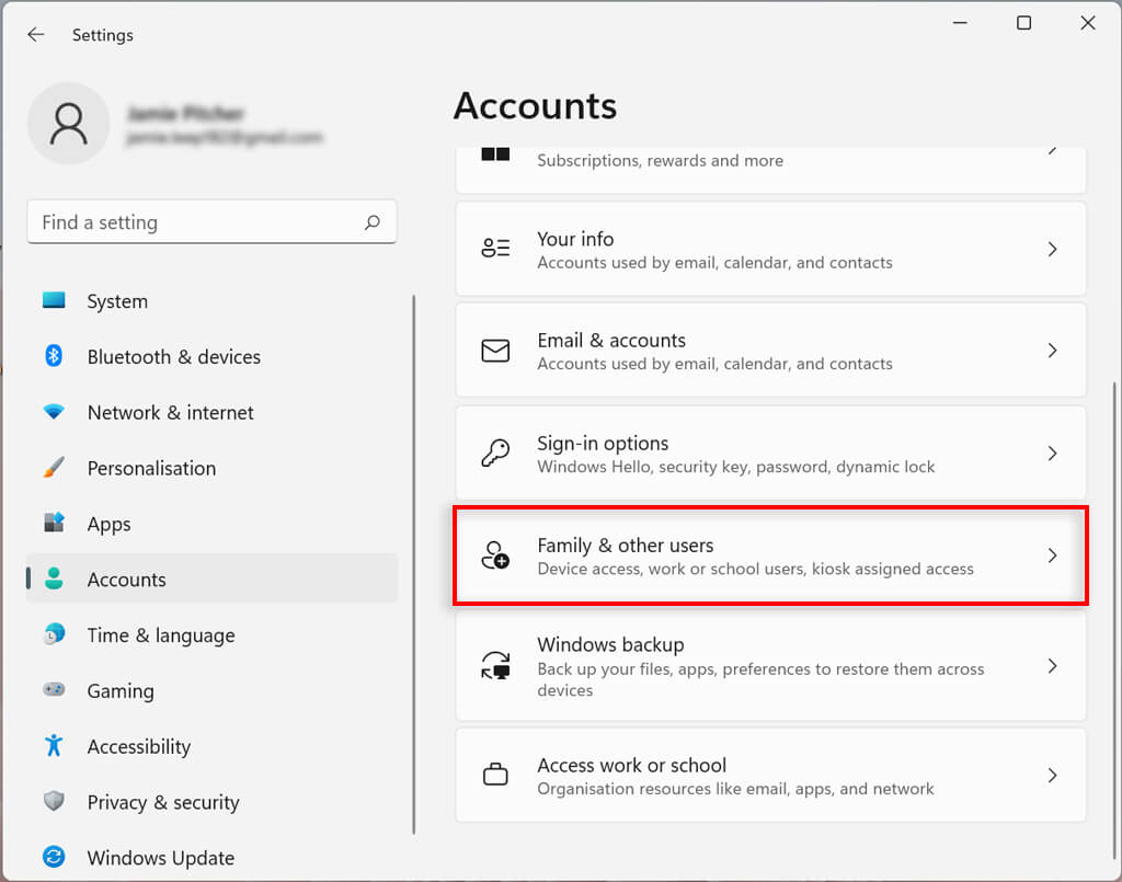 - Choose Family & other users.