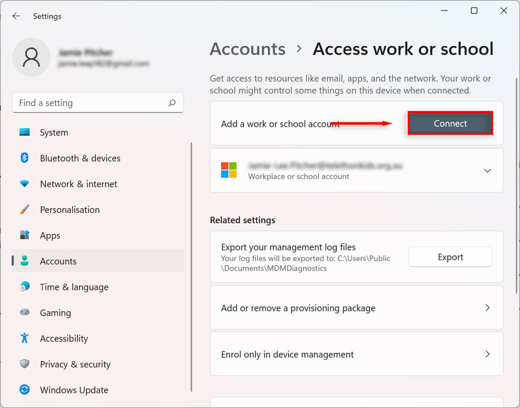 How to Connect an Organization to Your Windows 11 Account
