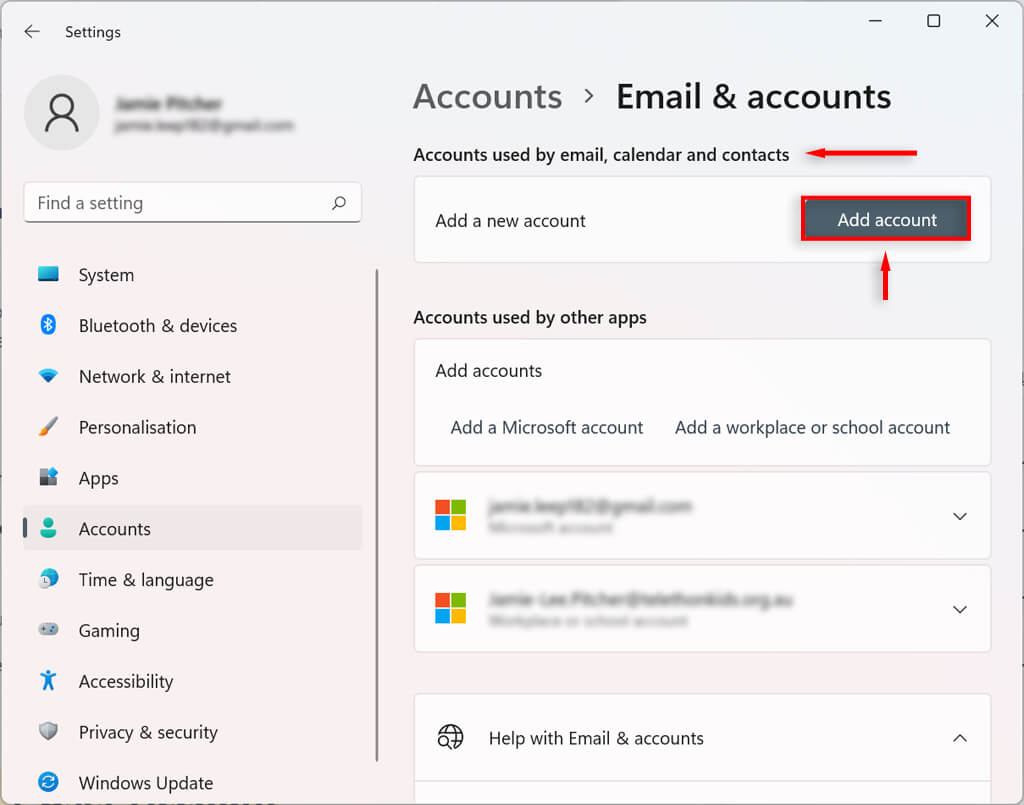 How to Link Additional Emails to Mail, Calendar, and Contacts Apps to a Windows 11 User Account