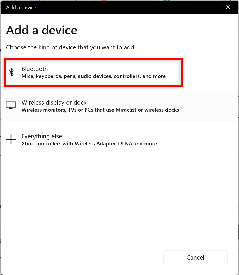 - Select Bluetooth. Turn on Bluetooth on the device you want to pair and select the device from the list and pair it to your computer.