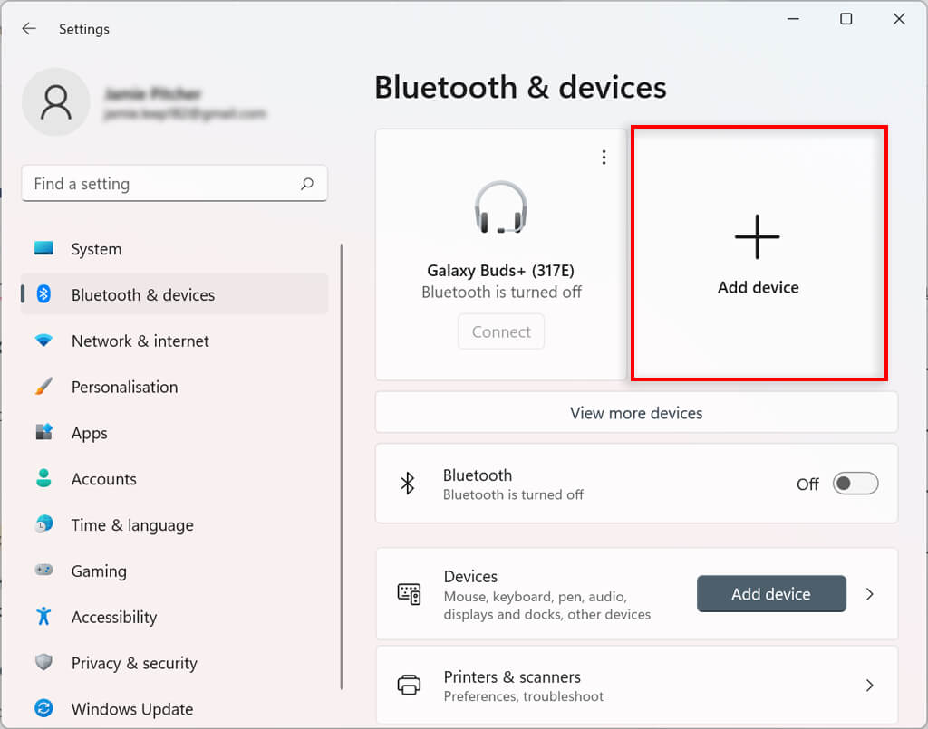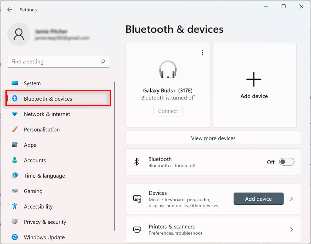 - Select Bluetooth & devices.