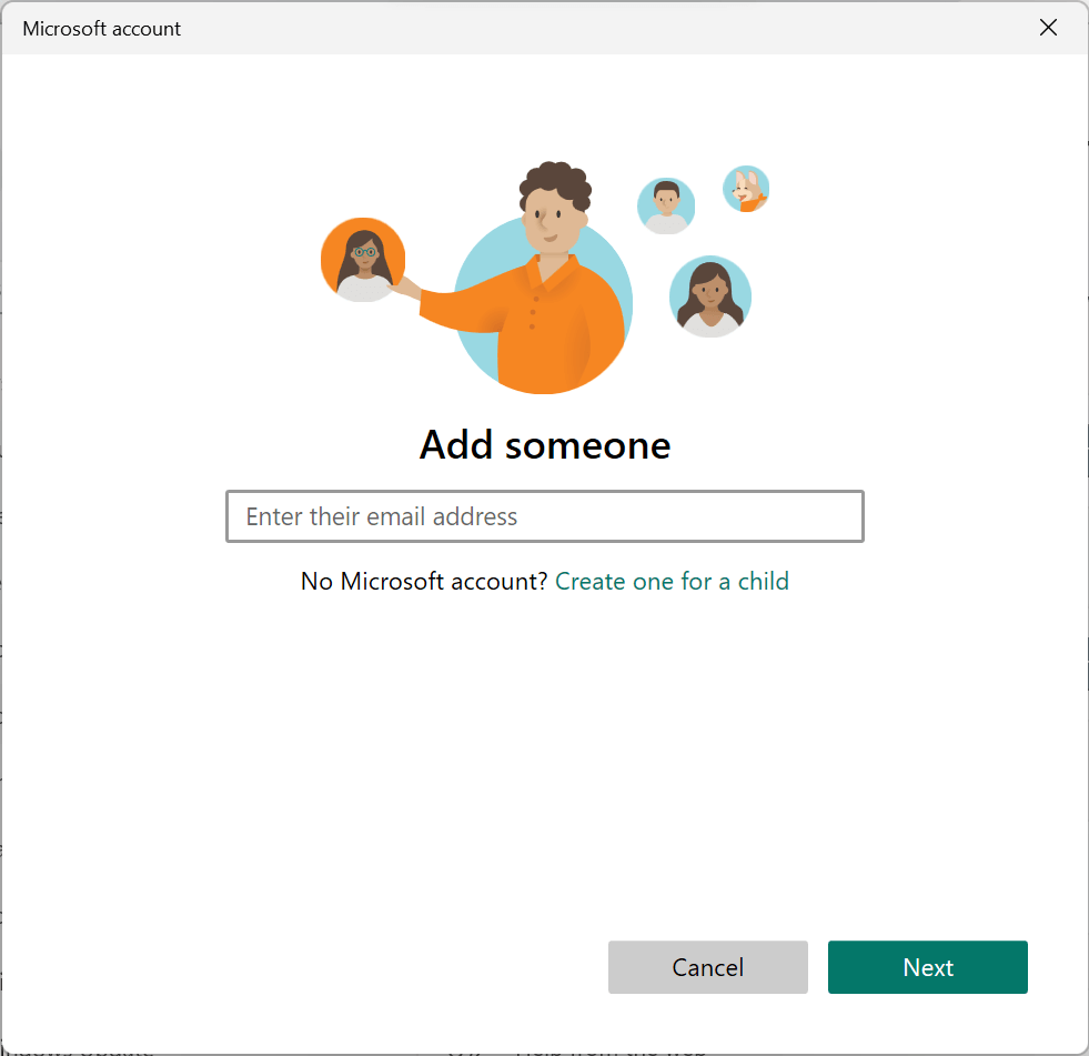 - Next to Add a family member, select Add account.