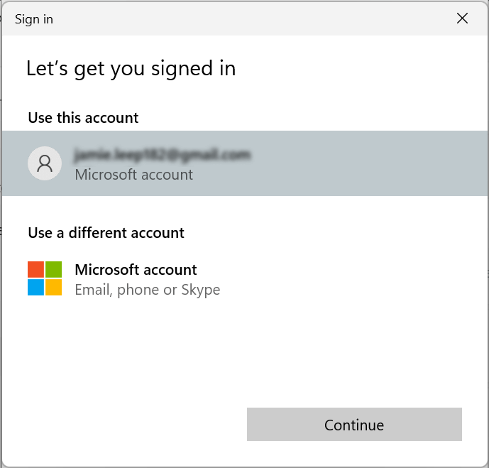- Select the account you would like to add the email to and click Continue.