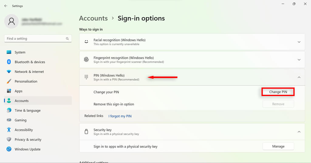 Windows 11 allows you to customize your sign-in preferences making use of Windows Hello. Windows Hello is a more personal way to access your devices via a PIN, fingerprint, or facial recognition. You can also enable sign-in with a physical key.
