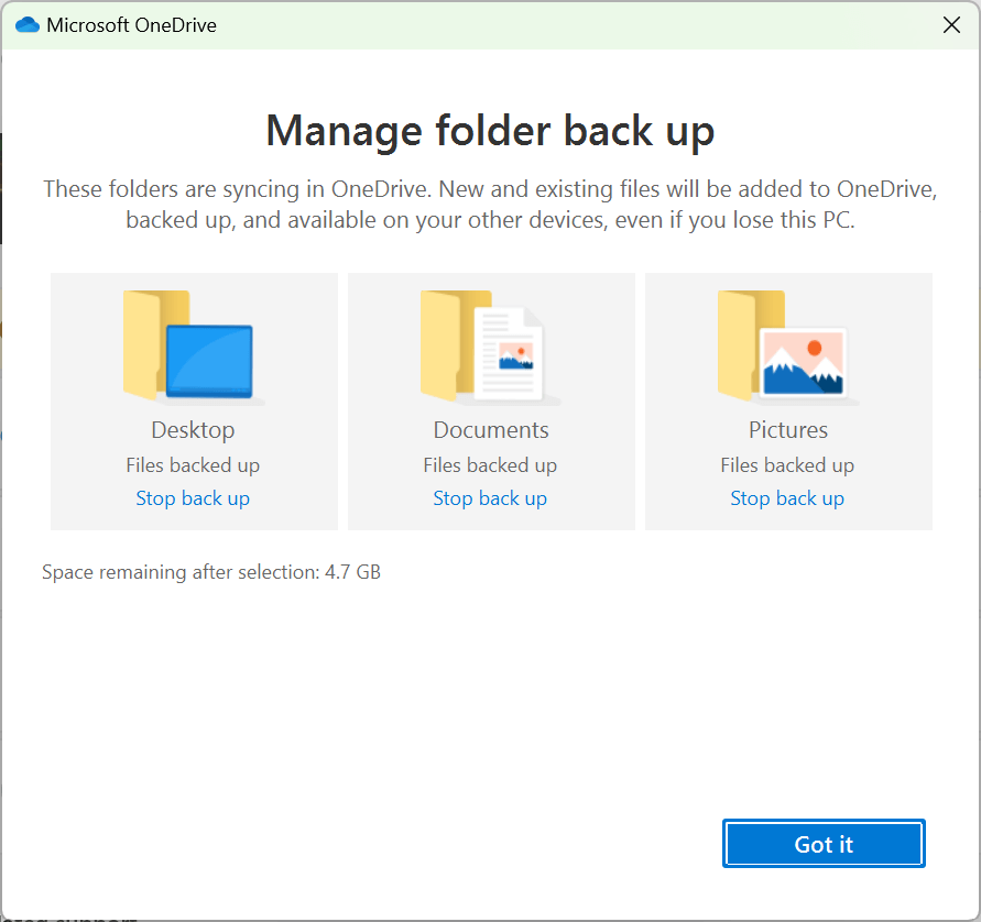 - The backup will start automatically. If not, select Start backup. * (Optional) You can toggle on Remember my apps, Remember my preferences, and Remember my preferences to sync your Microsoft apps, preferences, and settings between devices.