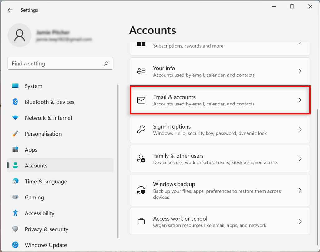 - Choose Email & accounts.