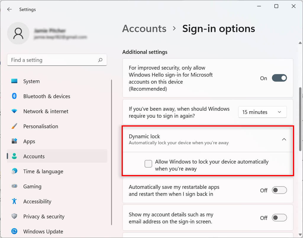 Enable Dynamic Lock in Windows 11