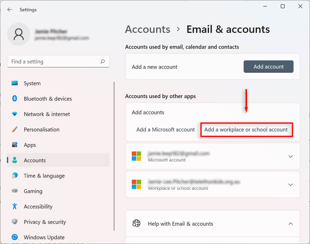 You can also add workplace and school accounts to your Windows 11 user account. This will allow you to use apps such as OneDrive.