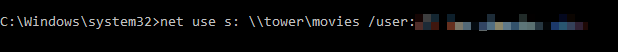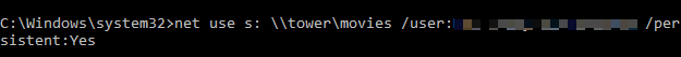 - It will look something like this: net use g:towerentertainment /user:OTT bringthatbeatback /persistent:Yes