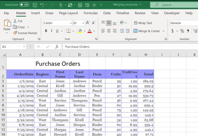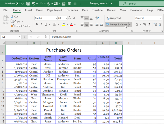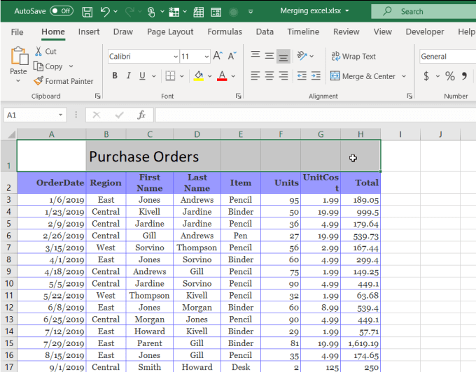 One of the most common reasons to merge multiple cells is when you’re creating a title row in your Excel spreadsheet.