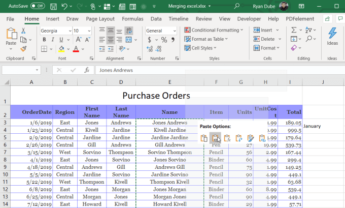 This isn’t the most sophisticated way to merge columns in Excel, but it works and it’s easy.