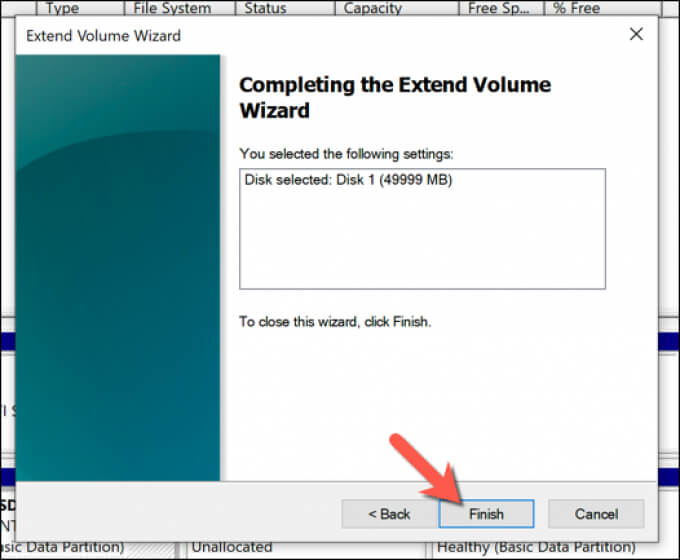 After a few moments, your system partition will be expanded to include the additional space on your drive, ensuring that all available drive space is usable.