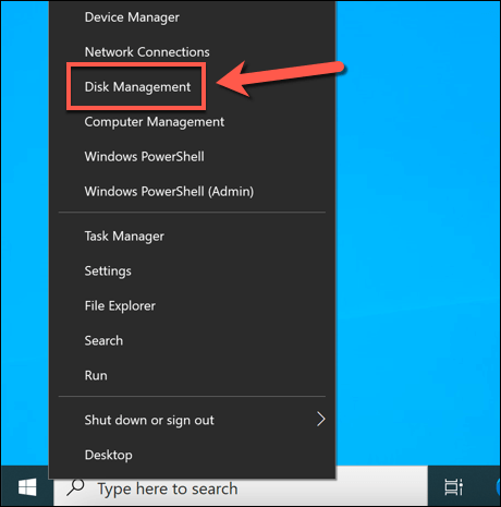 - To do this, boot into Windows on your new drive and sign in. Right-click the Start menu and select the Disk Management option.